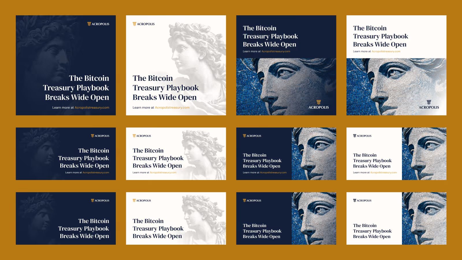 The hard part wasn't the design. Acropolis operates in a category most finance leaders haven't wrapped their heads around yet. The brand had to earn credibility with CFOs and Treasurers without leaning on the usual crypto shorthand. Every call we made, from the mark to the color system to how the voice guidelines read, pointed at one thing: trust with the people signing off on the money.